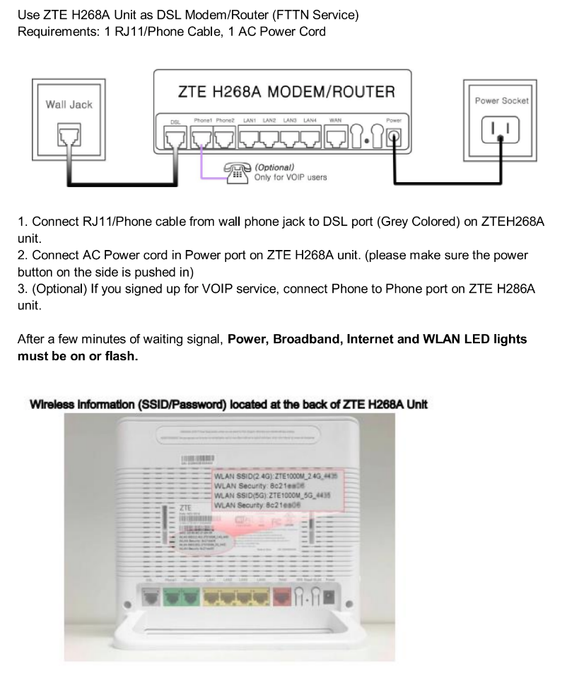 Try this step-by-step guide to set up your ZTE H268A – DSL Modem/Router/Phone Device.